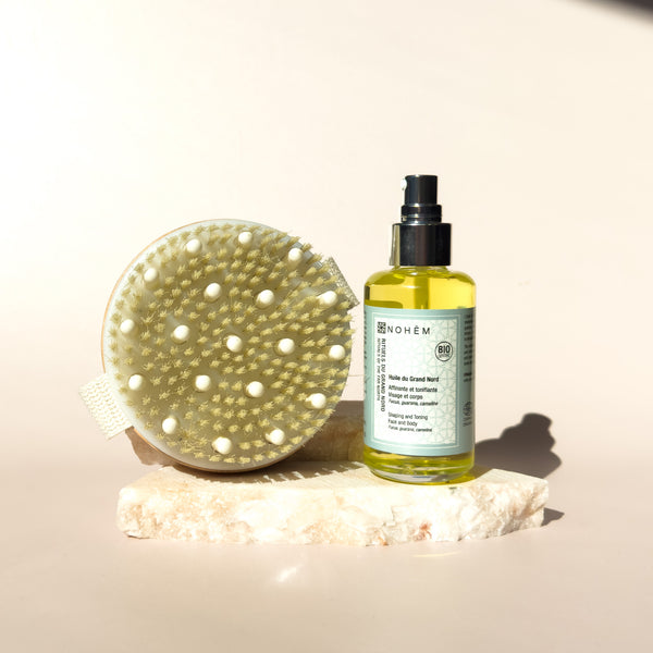 Réveillez votre peau et redessinez votre silhouette avec ce duo essentiel pour le corps. Composé d’une brosse pour le brossage à sec et d’une huile minceur aux actifs naturels, ce coffret combine efficacité, douceur et plaisir sensoriel.