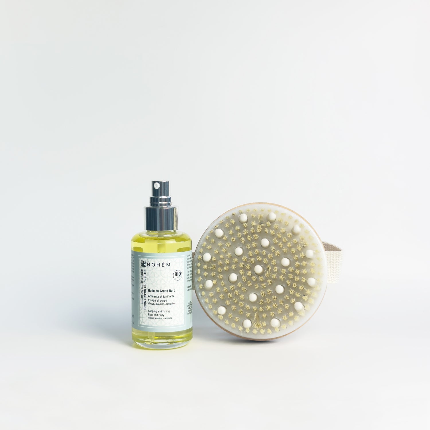 Réveillez votre peau et redessinez votre silhouette avec ce duo essentiel pour le corps. Composé d’une brosse pour le brossage à sec et d’une huile minceur aux actifs naturels, ce coffret combine efficacité, douceur et plaisir sensoriel.